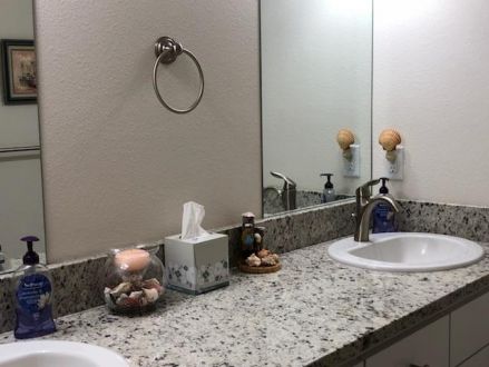 The master suite consists of a large bedroom; the master bath with large walk-in tiled shower, dual sinks with granite counter; and a walk-in closet.